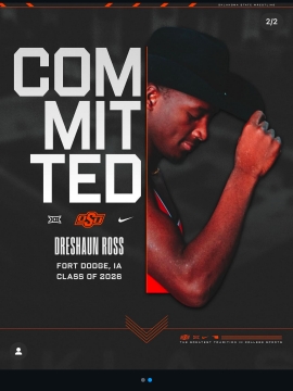 Ross, who chose the Pokes over Iowa, Iowa State and Penn State, is out of Fort Dodge, IA, and checks in at 6-3, 195 pounds. This commitment comes a week after the Pokes had a successful trip up to Iowa with wins over Northern Iowa and Iowa State, and few weeks before they make the trip back to Iowa for the season-ending dual against Iowa.