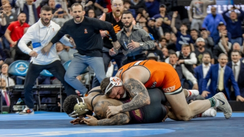 There were just two matches left and Iowa a heavy favorite in both of them. The Cowboys needed a miracle. They needed their best and most explosive wrestler but he was at home.