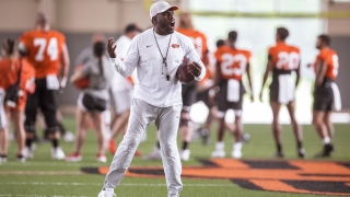 I’ll hand it to Mason, very similar situation as Kevin Williams started out as an end, but as he grew, he moved some inside. The Vikings used him at both places during his NFL career. If you are Lacy, just to be compared to Williams, who is one of the best that I ever saw come through Oklahoma State, is awesome. The increased work and ability to show he can play tackle or end will help Lacy’s resume’ for the NFL. He isn’t talking about that, although he admits he agrees with the thought.