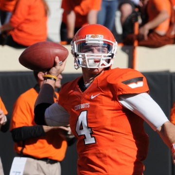 At Oklahoma State, Walsh’s dual threat talents came in handy. He completed 66.9 percent of his passes in 2012 and Walsh was voted the Big 12 Offensive Freshman of the Year by conference coaches in 2012. All that even though he battled through an injury-plagued redshirt freshman season that year to finish the season with 1,564 passing yards and 13 touchdowns against just three interceptions. He completed 66.9 percent of his passes in 2011.