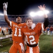 As a player Gundy was the school’s and the Big Eight’s all-time leading passer and total offense leader. His name is still prevalent in the school’s record books although some of his player’s he coached have passed many of his marks. He took over as starting quarterback as a freshman and led Oklahoma State to wins in the Sun Bowl over West Virginia and the Holiday Bowl over Wyoming. He played alongside some of the greatest players in Oklahoma State history in Hart Lee Dykes, Barry Sanders, and Thurman Thomas and behind the offensive line known as the “War Pigs.”