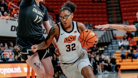 OSU opened the second period on a 9-0 run to move in front, 24-15. The Cowgirls would hit seven of their first nine shots in the period and would extend the margin to double digits for the first time at 31-18 halfway through the quarter. Junior Ja'Mee Asberry drilled her third 3-pointer of the quarter as time expired to give OSU a 42-29 lead at the break.