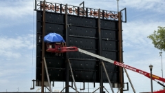 Construction and specifically the electronics portion of the installation seemed to be on going as we went back behind right field to see the work going on with the bucket lift.