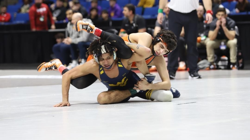 Heavyweight Konner Doucet, the No. 2 seed made his way into the finals with a 4-2 decision over Luke Rasmussen of South Dakota State. Top seed Yonger Bastida of Iowa State will be his opponent. Bastida is still unbeaten and won by fall over David Szuba of Arizona State in the first period.